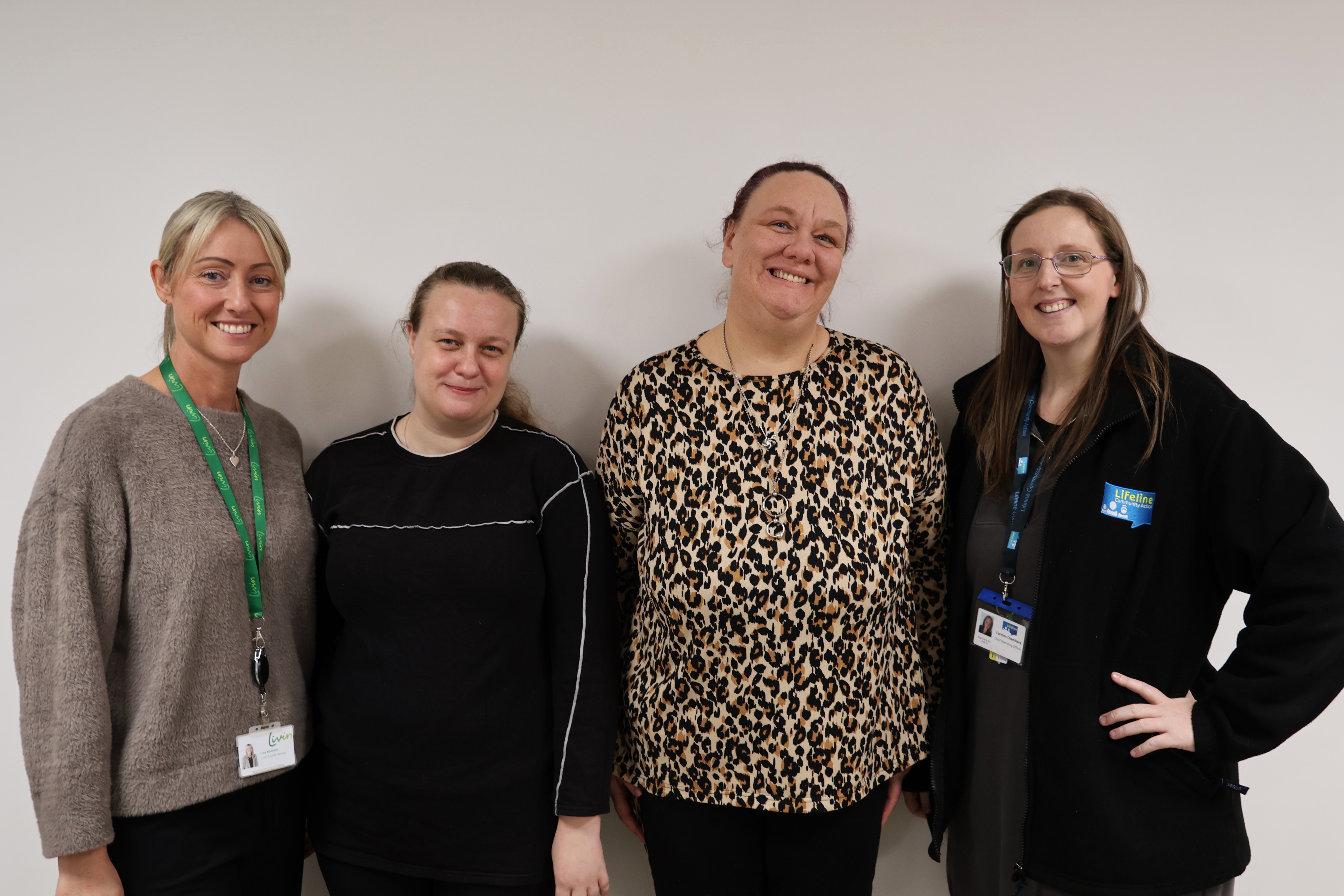 Pictured: Lisa Newham, Community Regeneration Adviser, Stephanie Shaw, Livin tenant, Donna Hunter, participant, Corrinn Chambers, Chief Operating Officer.